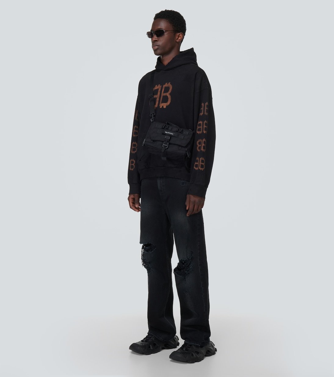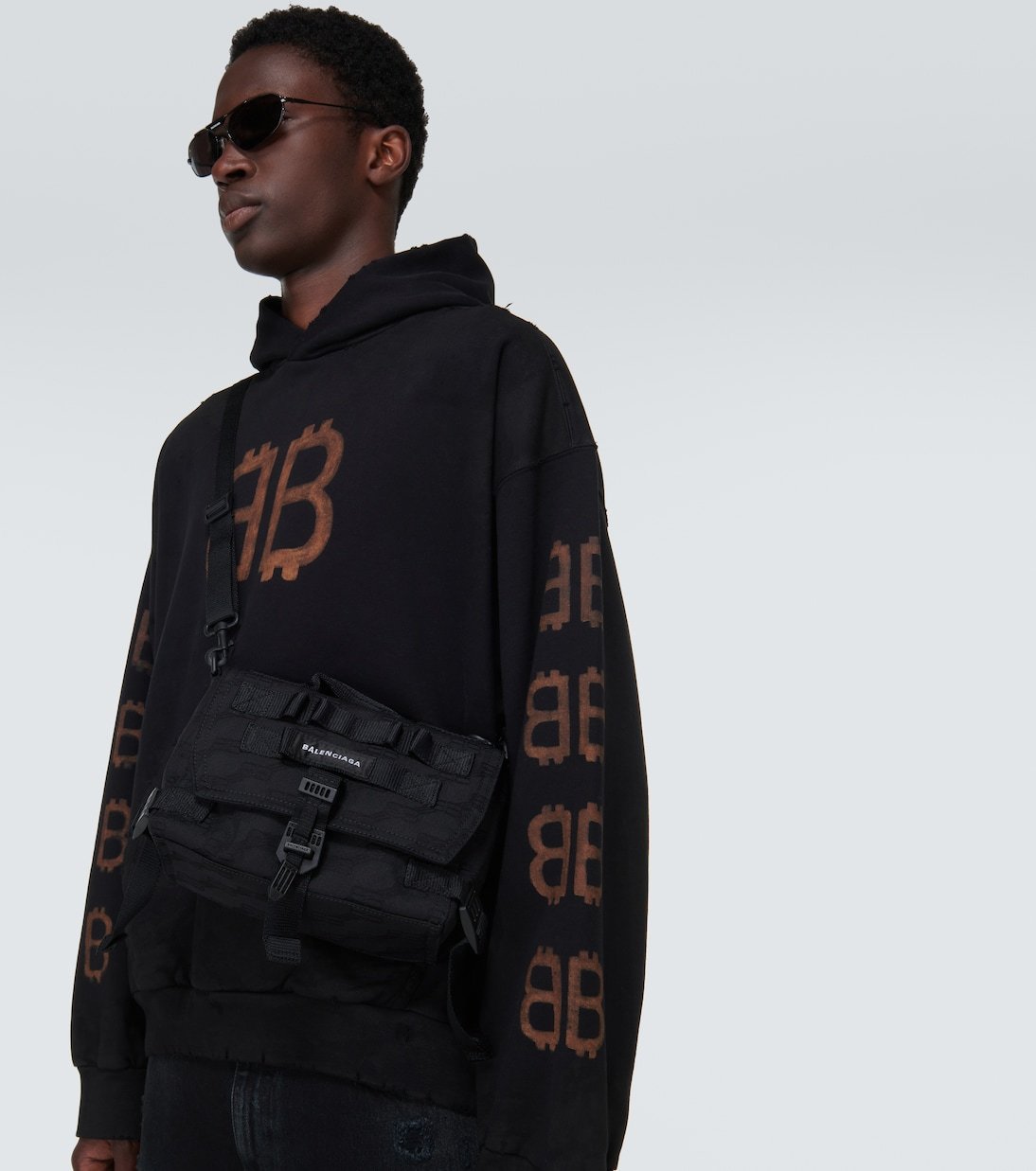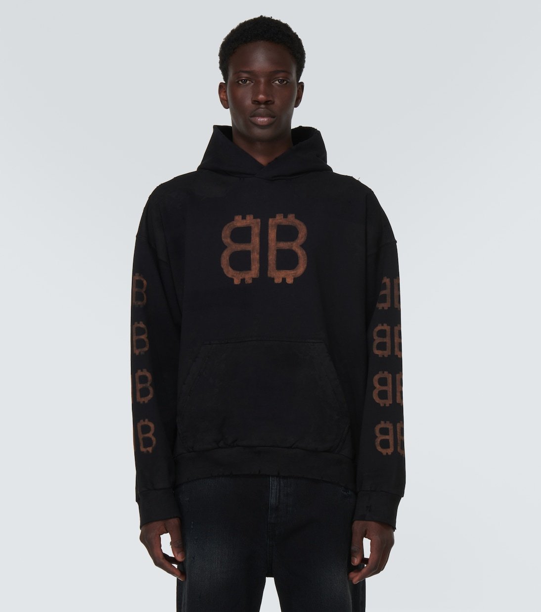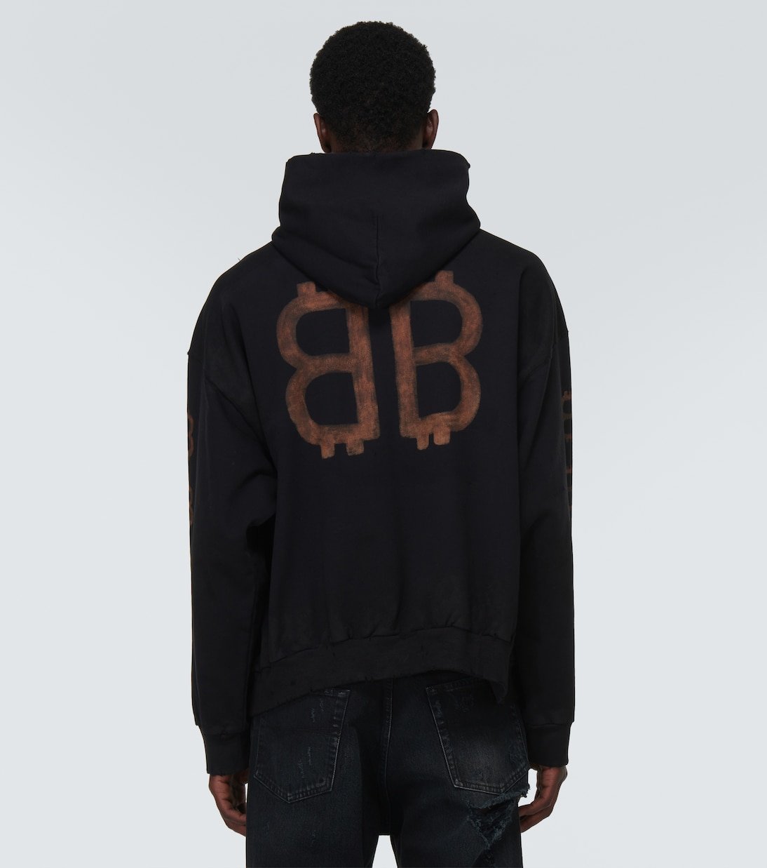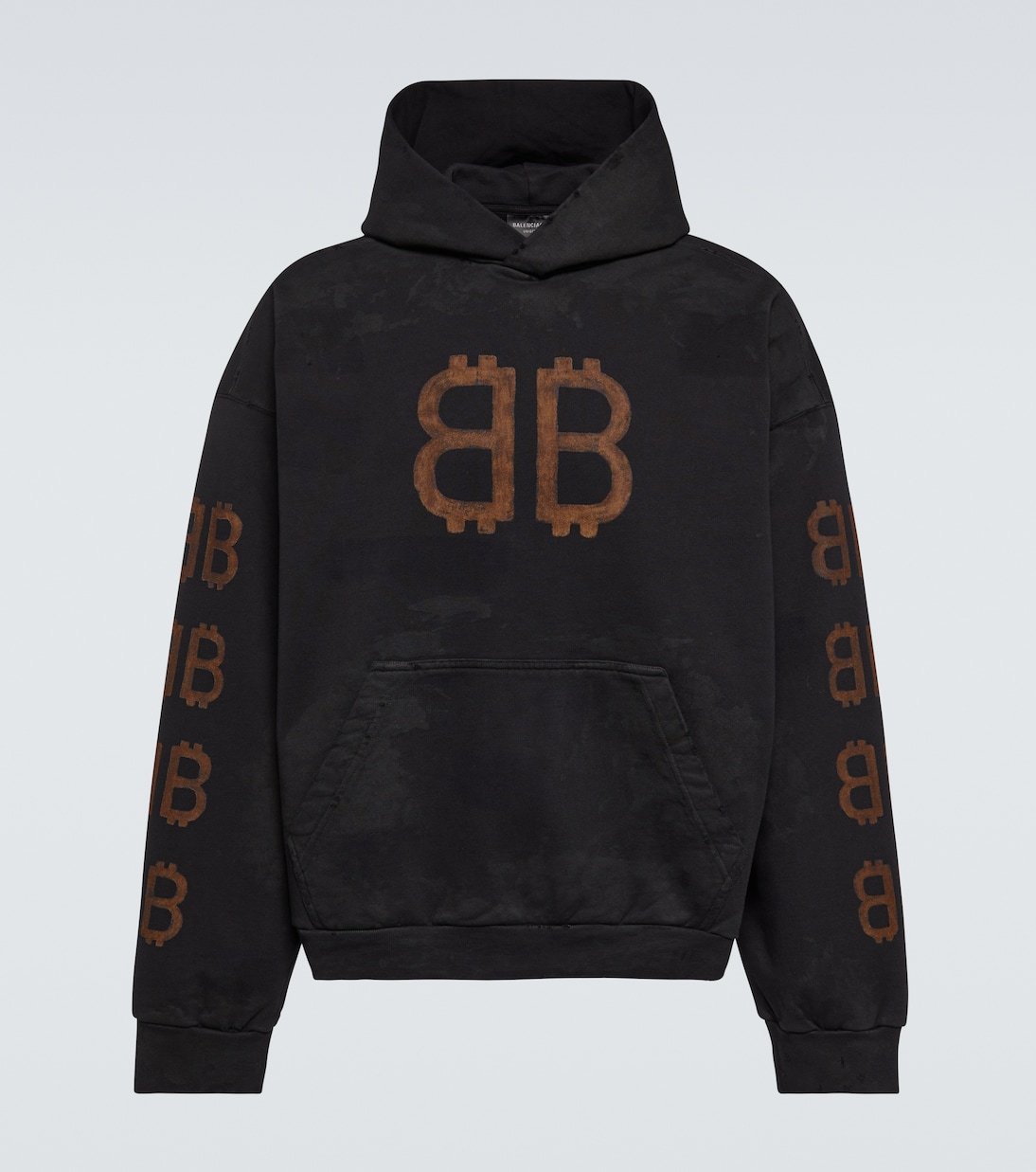 L’imprimé Crypto sur ce sweat-shirt à capuche symbolise la toute dernière itération saisonnière du logo de Balenciaga.