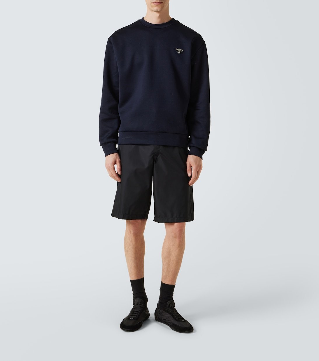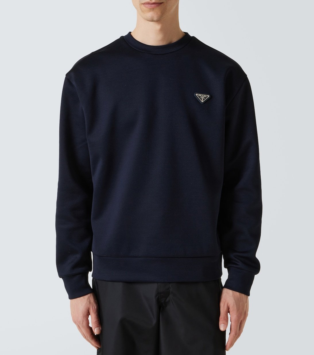 Le logo triangulaire Prada est un hommage à la relation historique de la maison avec la famille royale italienne, la Maison de Savoie. Ce sweat-shirt légèrement oversize est réalisé en jersey de coton mélangé et arbore une plaquette de cet emblème cousue sur le devant.