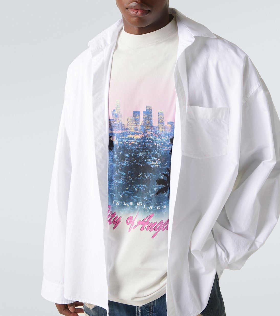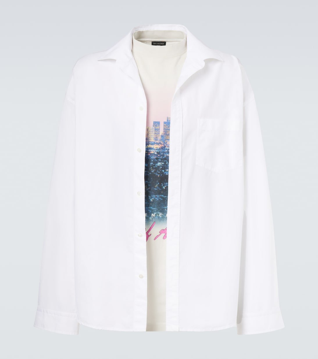 Balenciaga infuse chaque pièce d’une touche d’innovation avec son interprétation moderne de la mode. Cette pièce superposée se compose d’une chemise en popeline et d’un t-shirt imprimé en jersey de coton, avec une coupe oversize.