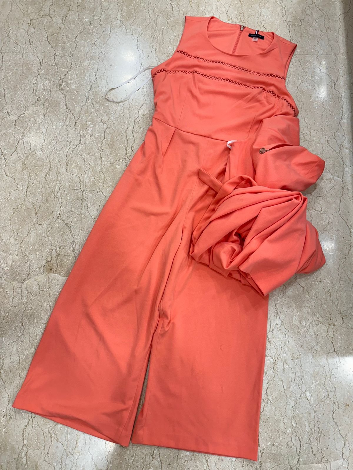 Confectionnée avec expertise par Tommy Hilfiger, cette combinaison en crêpe rose à bordures circulaires est une pièce luxueuse et unique. Confectionnée à partir de matériaux haut de gamme, elle arbore un design unique à bordures circulaires qui respire l’élégance et le style. Stock limité ! Profitez de la dernière taille disponible : 46 UK.