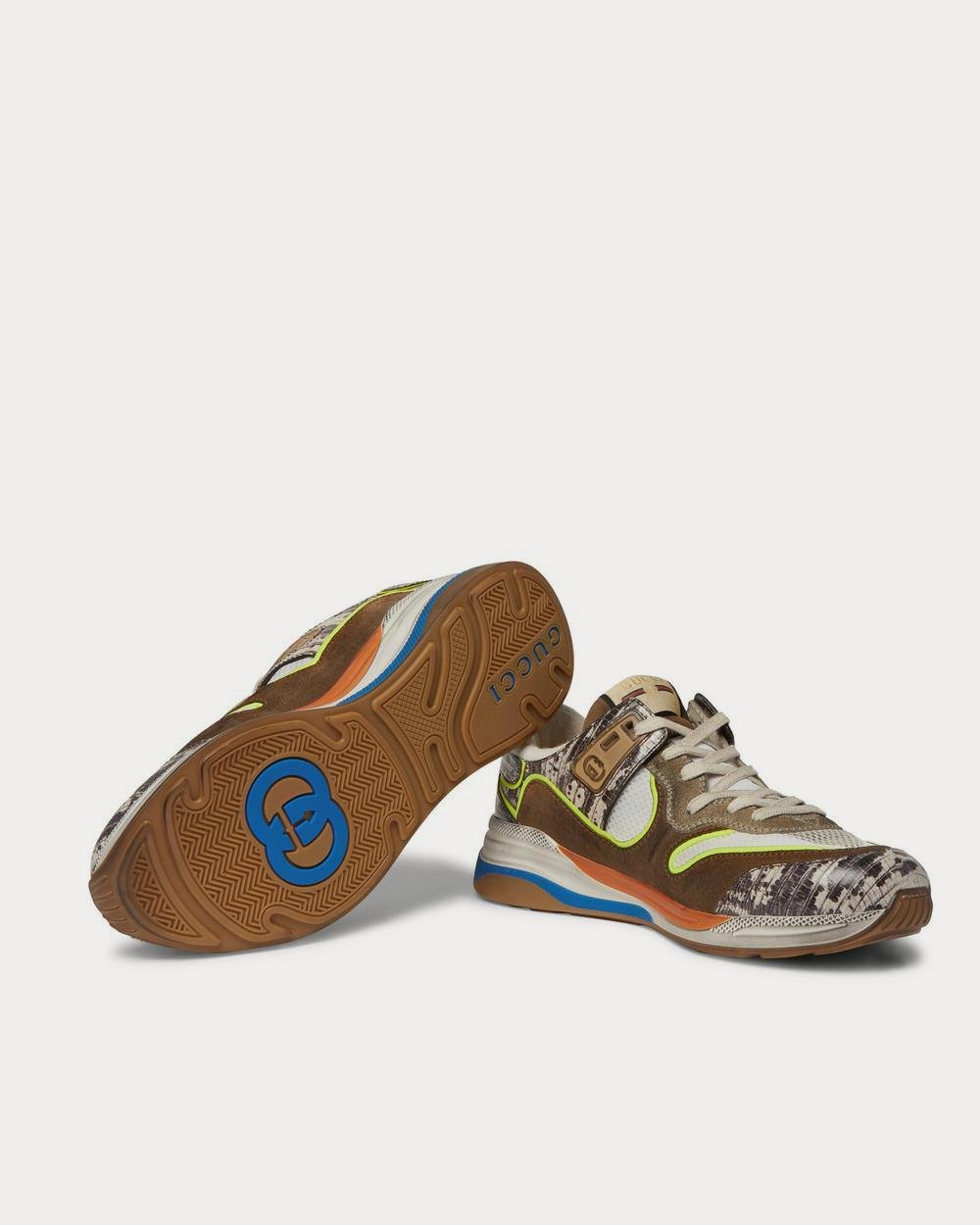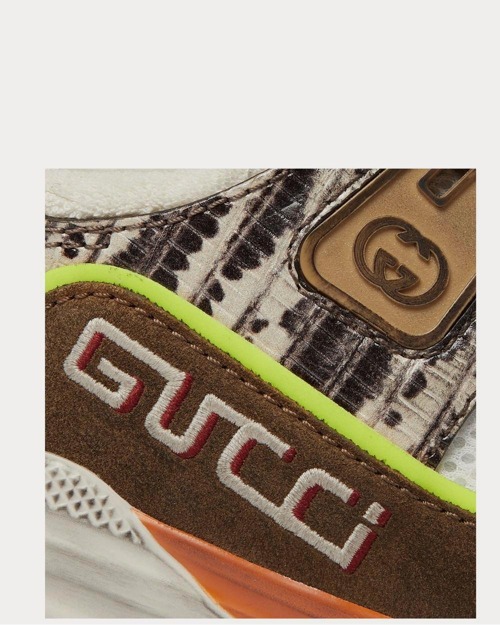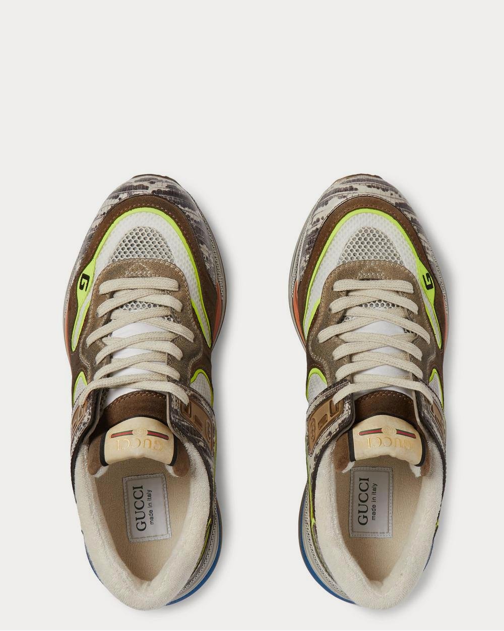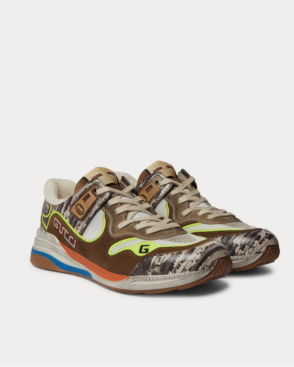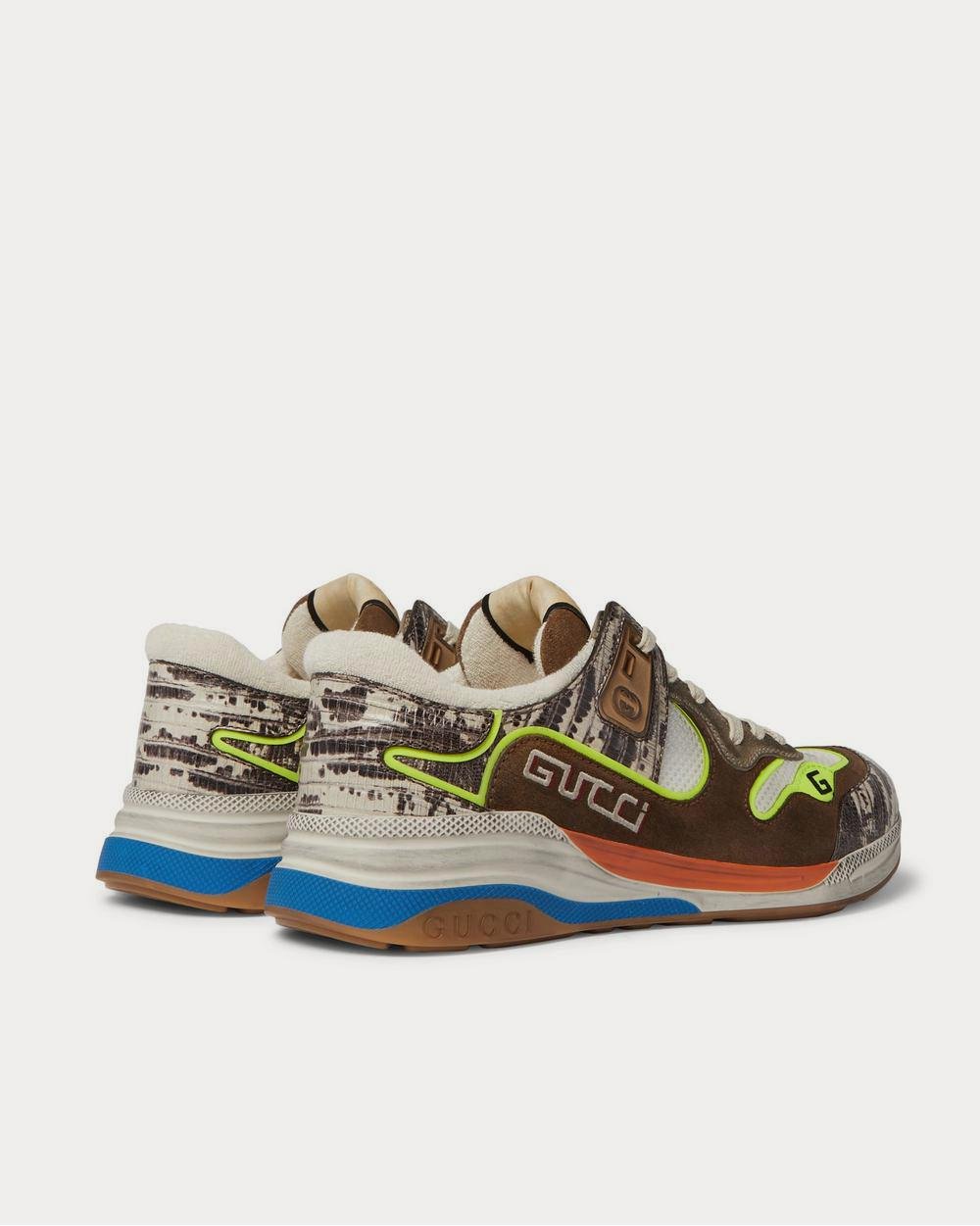 Baskets basses Gucci Ultrapace en daim vieilli, mesh et cuir effet serpent