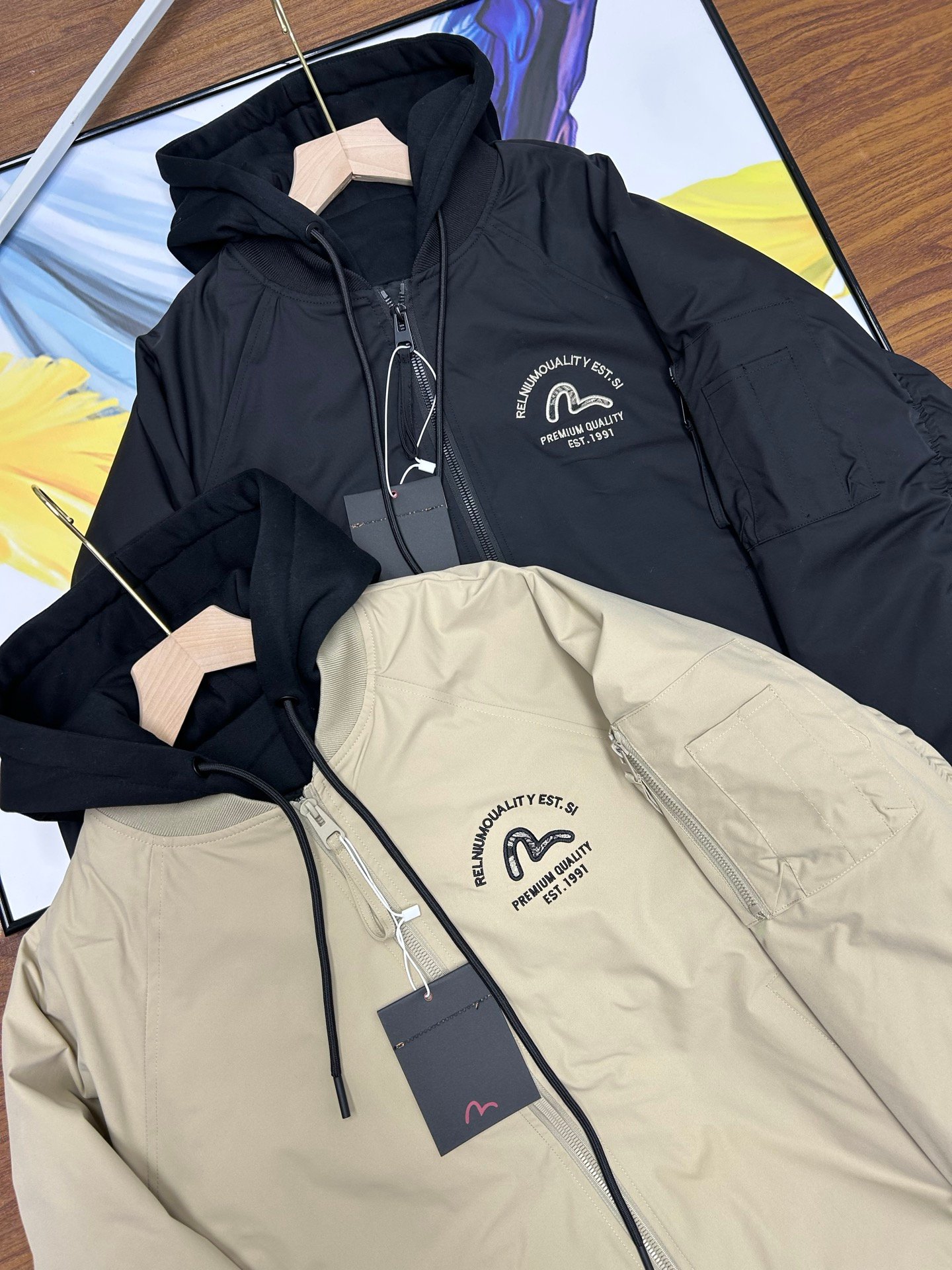 - Design sophistiqué : Veste à capuche avec logo brodé emblématique, disponible en noir et beige, pour un look tendance et intemporel.