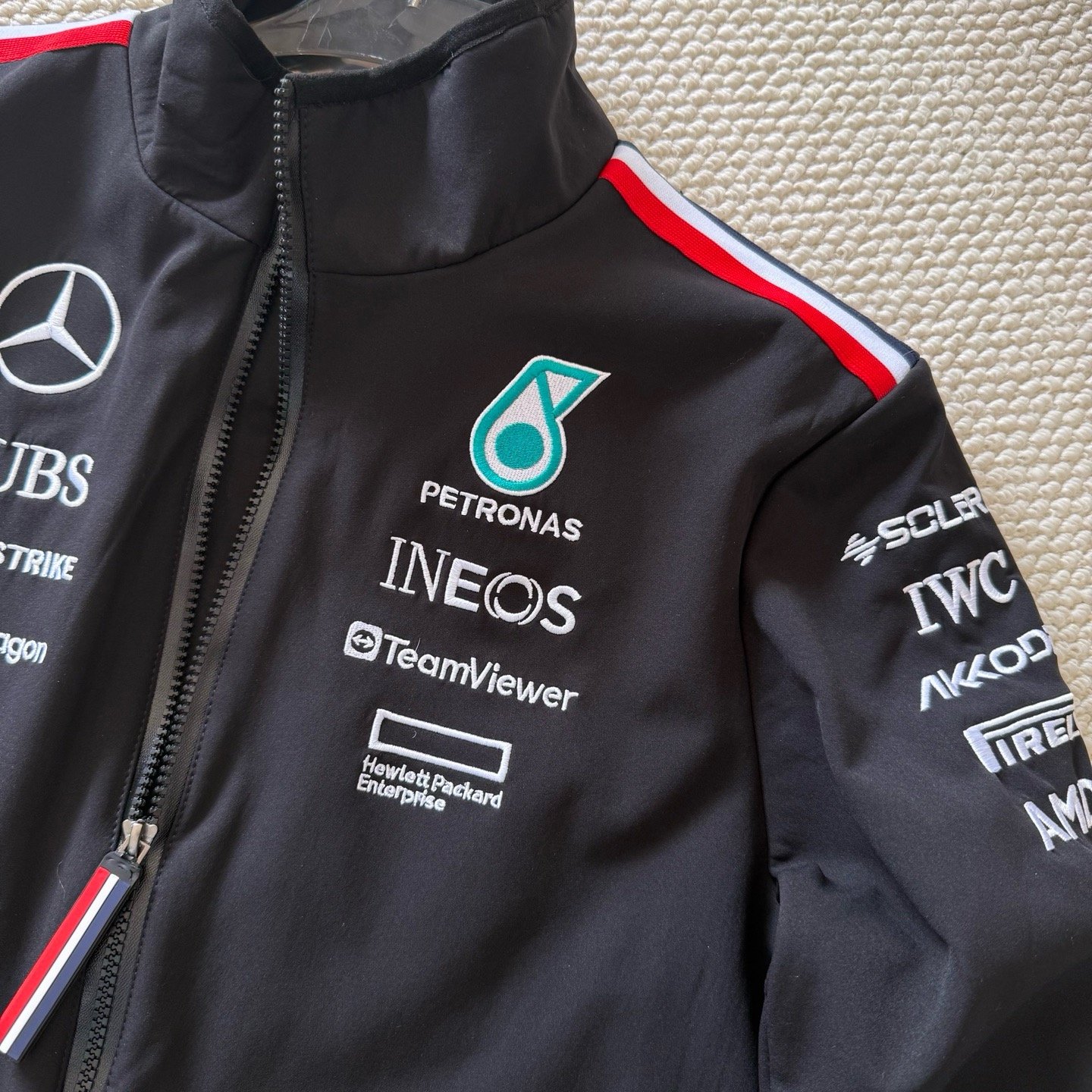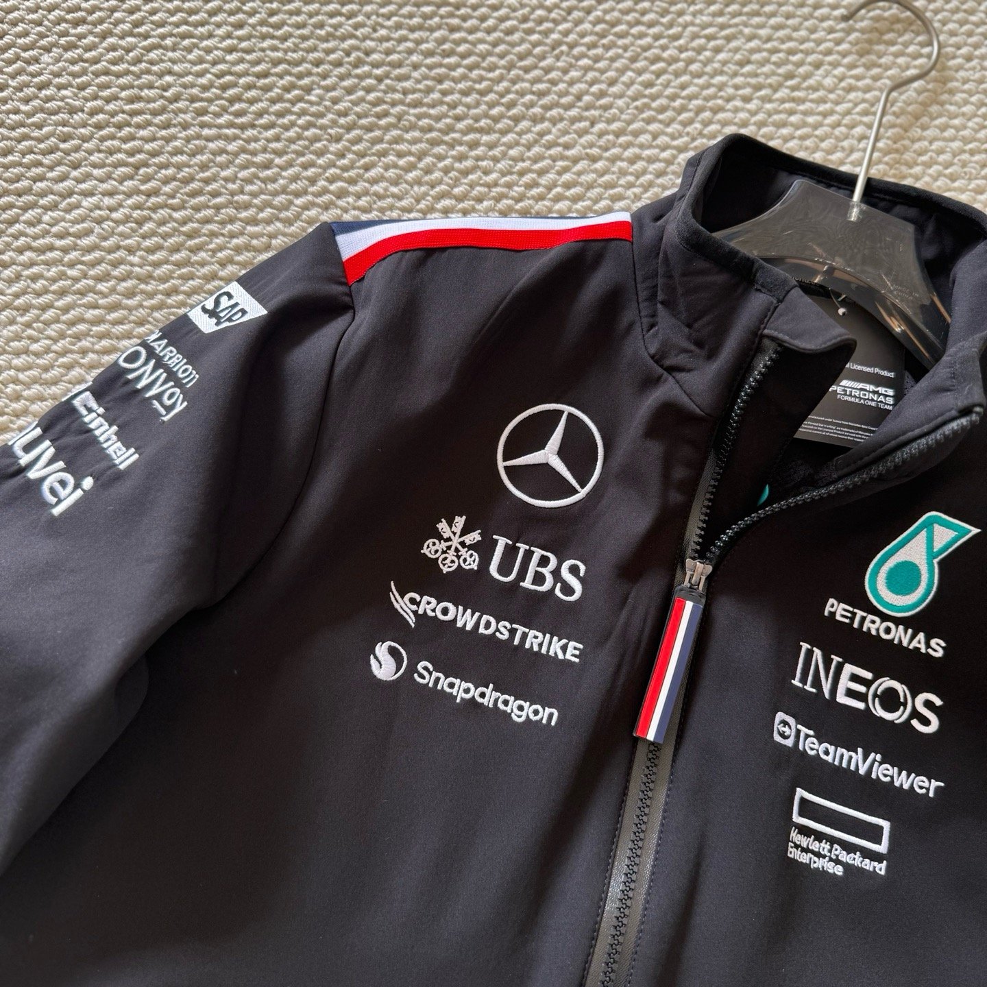 - Détails emblématiques : Logo Mercedes et Tommy Hilfiger, apportant une touche d’authenticité et de prestige.