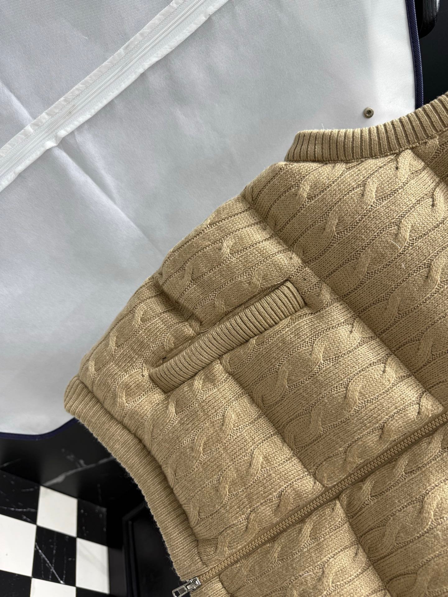 Matériaux et entretien : Fabriquée en maille de haute qualité, cette veste assure durabilité et confort. Pour préserver son aspect, il est recommandé de suivre les instructions d’entretien indiquées sur l’étiquette, généralement un lavage à la main ou en machine à basse température.