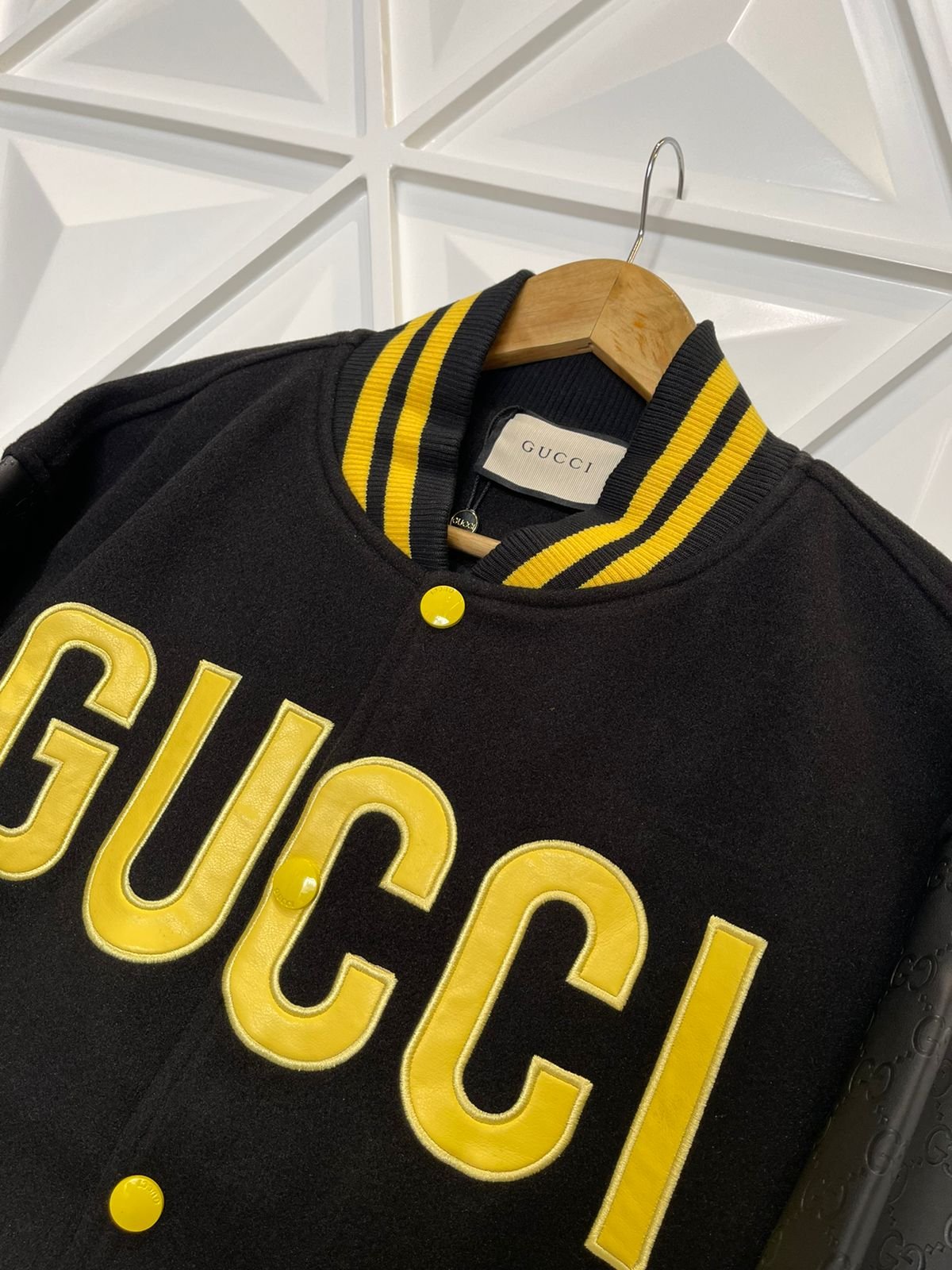 Découvrez les incontournables de l’hiver 2022 : les vestes originales haut de gamme pour homme. Confectionnées avec des manches en cuir universitaire Gucci et une matière en laine graphique, cette veste incarne le luxe et le style. Rehaussez votre garde-robe avec cet article de la boutique tant qu’il est encore temps.