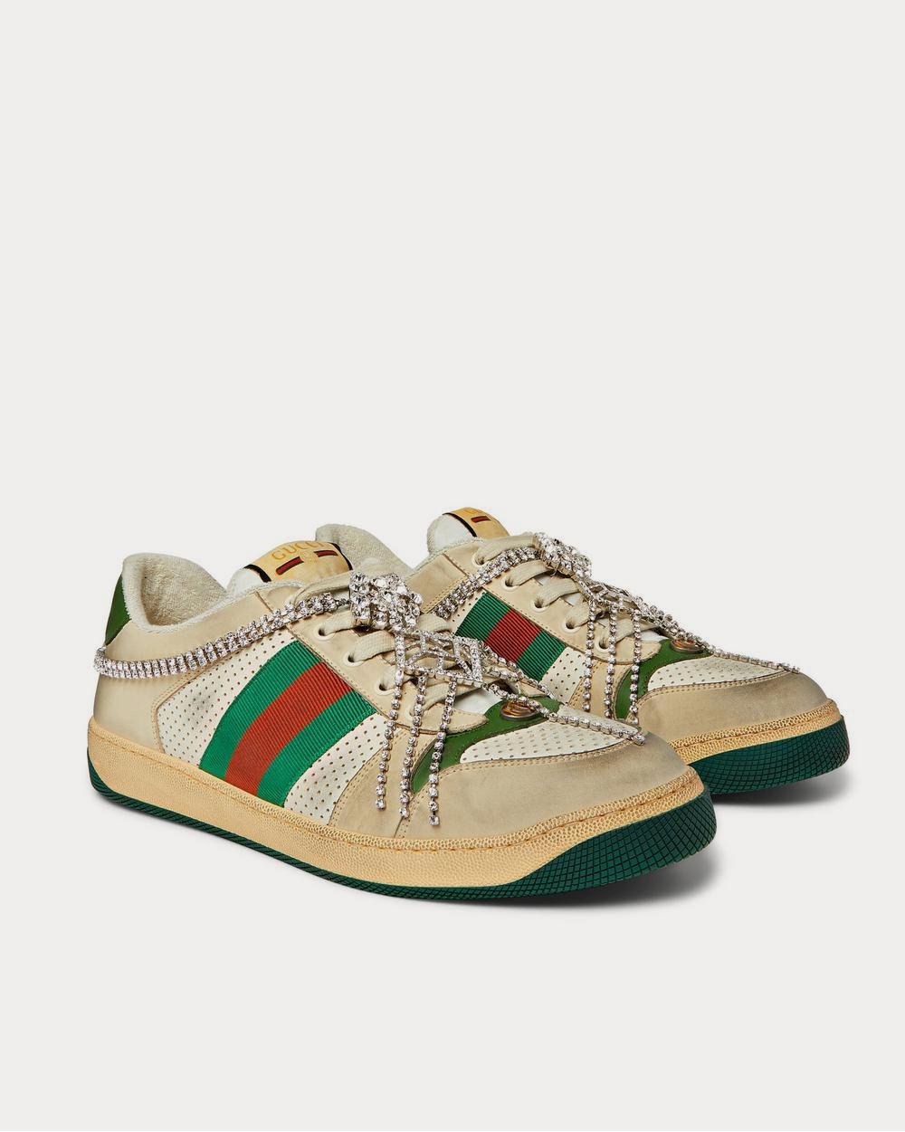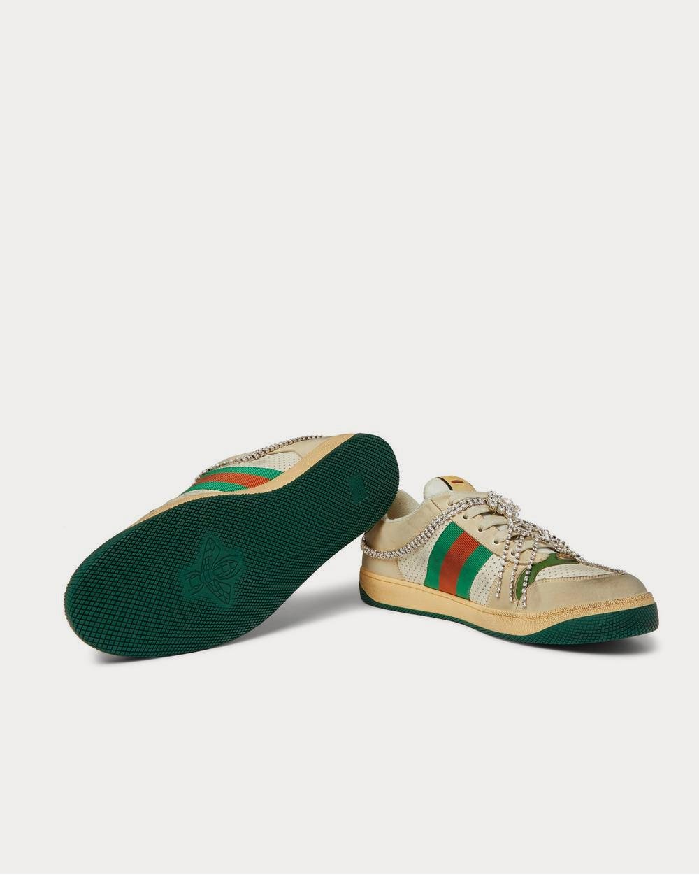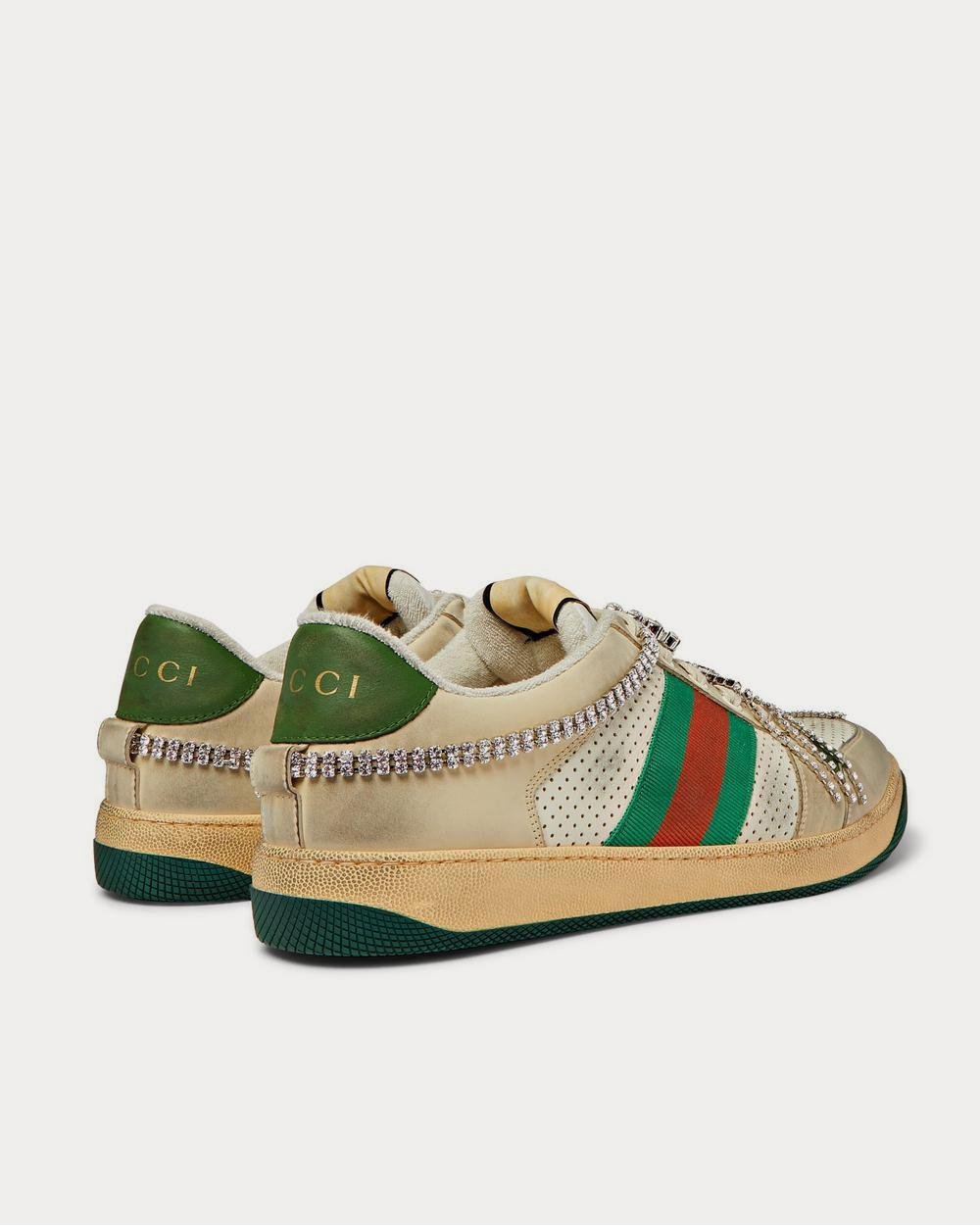 Baskets basses blanches Gucci Virtus en cuir vieilli orné de cristaux et de sangles