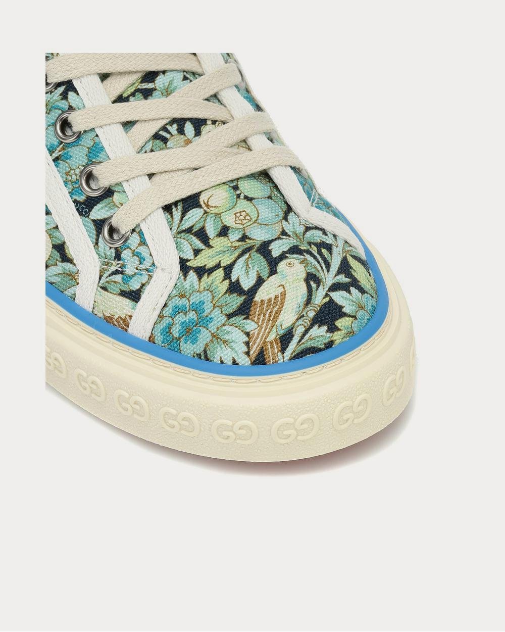 Gucci prolonge sa collaboration avec Liberty London en intégrant les imprimés emblématiques de la marque sur les baskets cultes Tennis 1977. Cette paire montante est confectionnée en toile avec des semelles intérieures confortables en tissu et des semelles en caoutchouc. Un motif botanique d’inspiration Tudor et un passepoil turquoise rejoignent les bandes Web emblématiques sur les côtés.