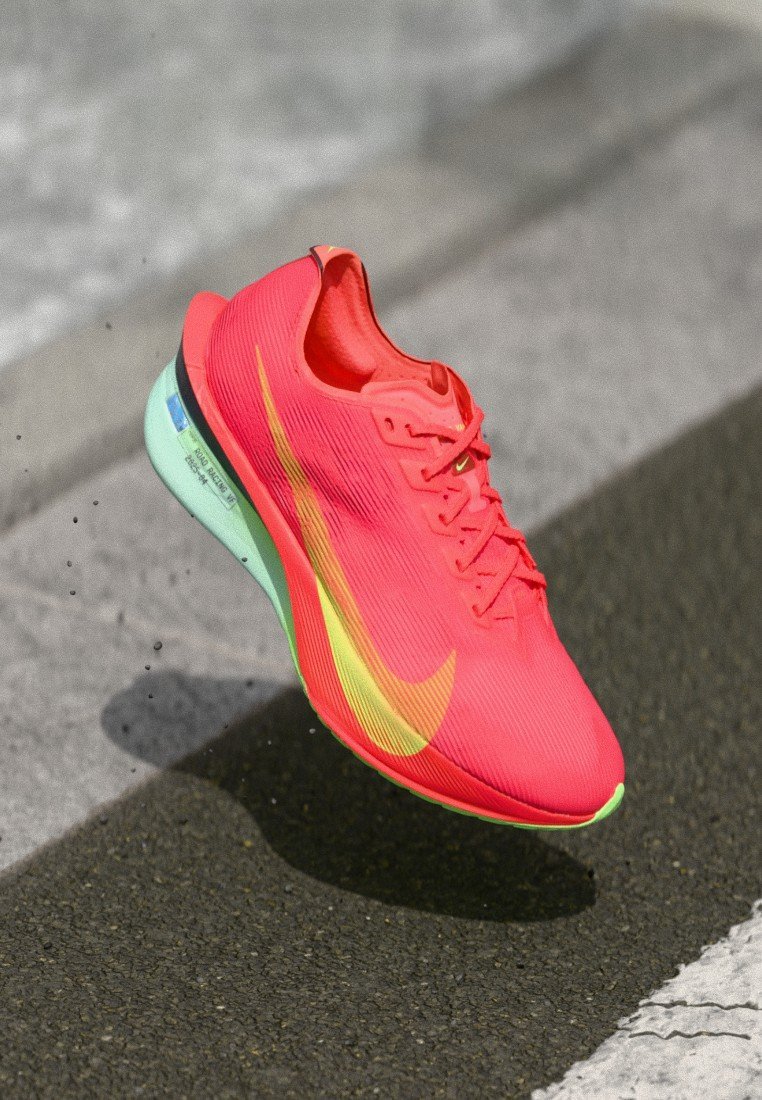 Matière et entretien Dessus / Tige : Tissu / matière synthétique Doublure : Textile Semelle de propreté : Textile Semelle d’usure : Matière synthétique Épaisseur de la doublure : Doublure protégeant du froid Semelle intermédiaire – Technologie : ZoomX (Nike) pour un retour d’énergie optimal; Fly Plate (Nike) pour un déroulé fluide et une sensation de propulsion Technologies : ZoomX (Nike) Détails du produit Sport : Running Bout de la chaussure : Rond Forme du talon : Plat Fermeture : Laçage Motif / Couleur : Imprimé Propriétés : Respirant Extras : Bout renforcé Semelle d’usure : Souple Semelle intérieure : Rembourrée, amovible, préformée, perforée Poids : 150 g Référence : N1241A1E6-G11 Voir les informations sur la fabrication Taille & coupe Hauteur de talon : Sans talon Voir le guide des tailles Nike Performance Suivre